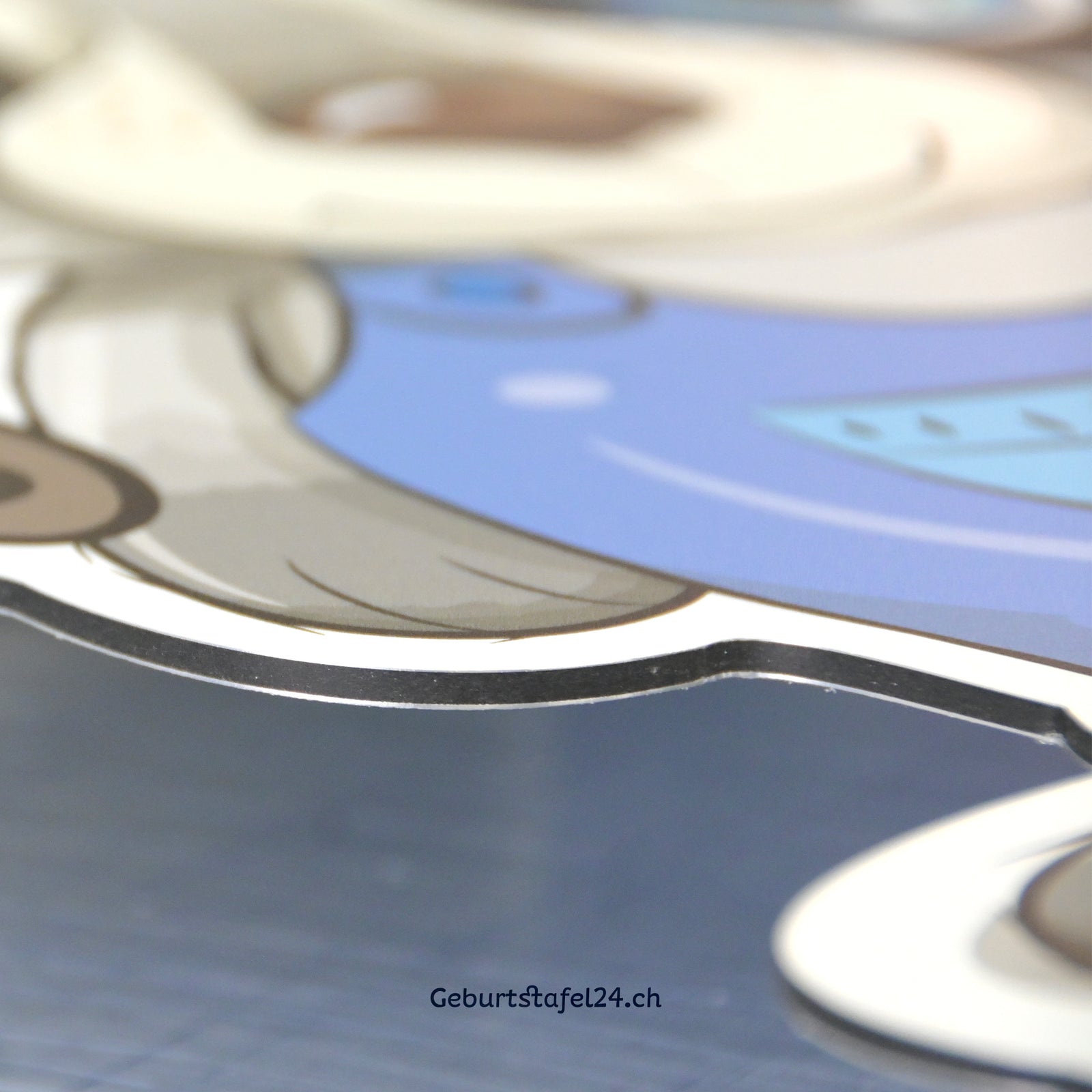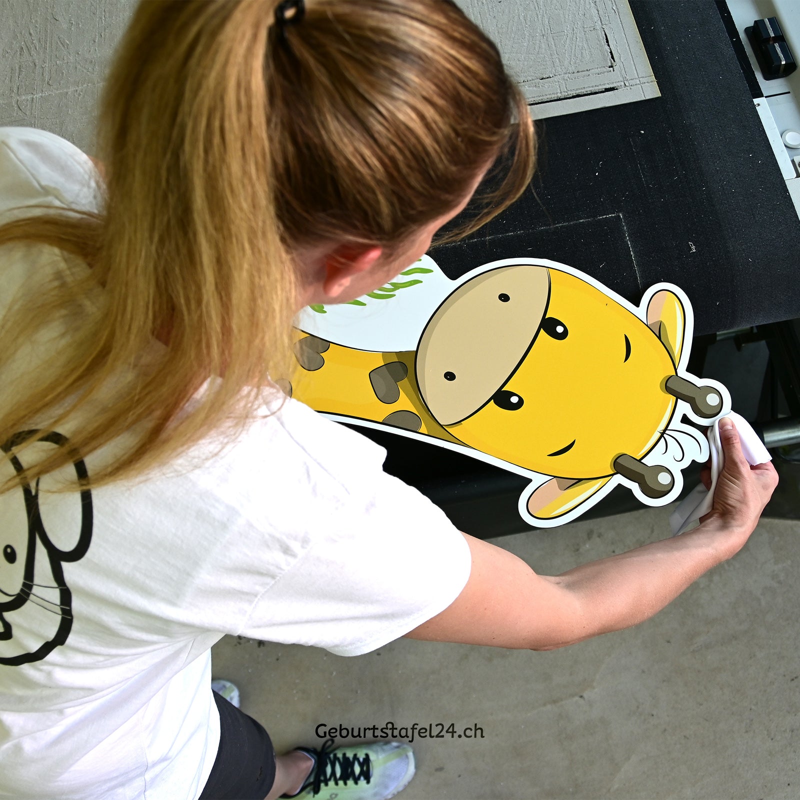Das Grundmaterial unserer Geburtstafeln ist eine hochwertige 3mm Aluminium-Verbundplatte Dibond. Es ist für den Innen- und Aussenbereich geeignet, sowie witterungsbeständig.
